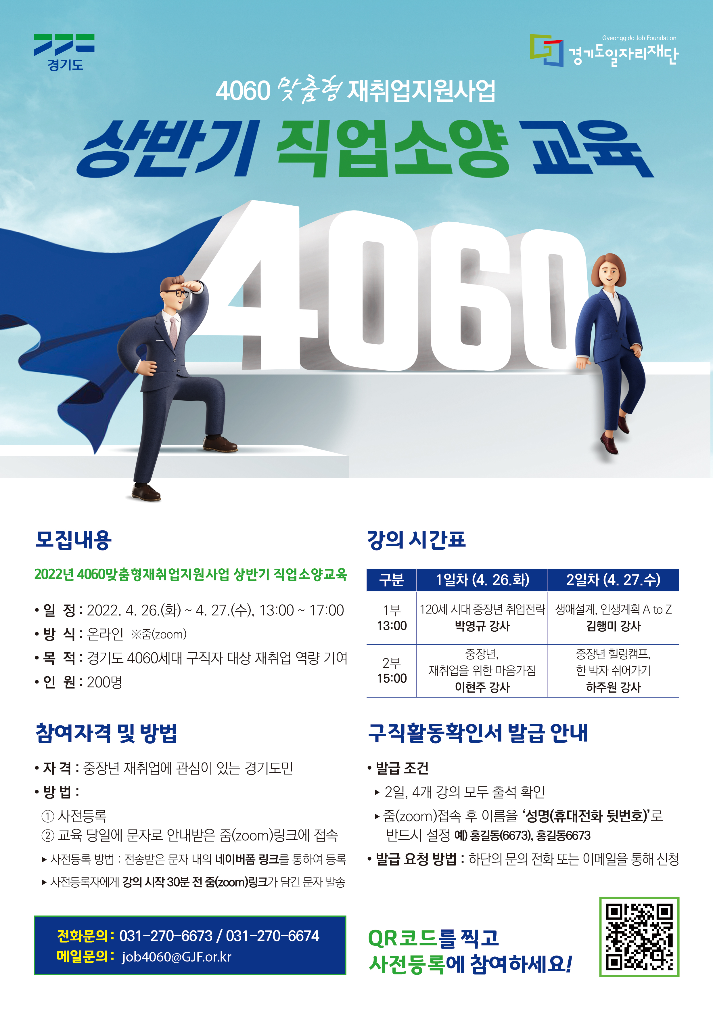 ❍ 목 적 : 경기도 4060세대 구직자 등에 다양한 취업정보 및 교양교육을 제공하고, 재취업 역량 향상에 기여