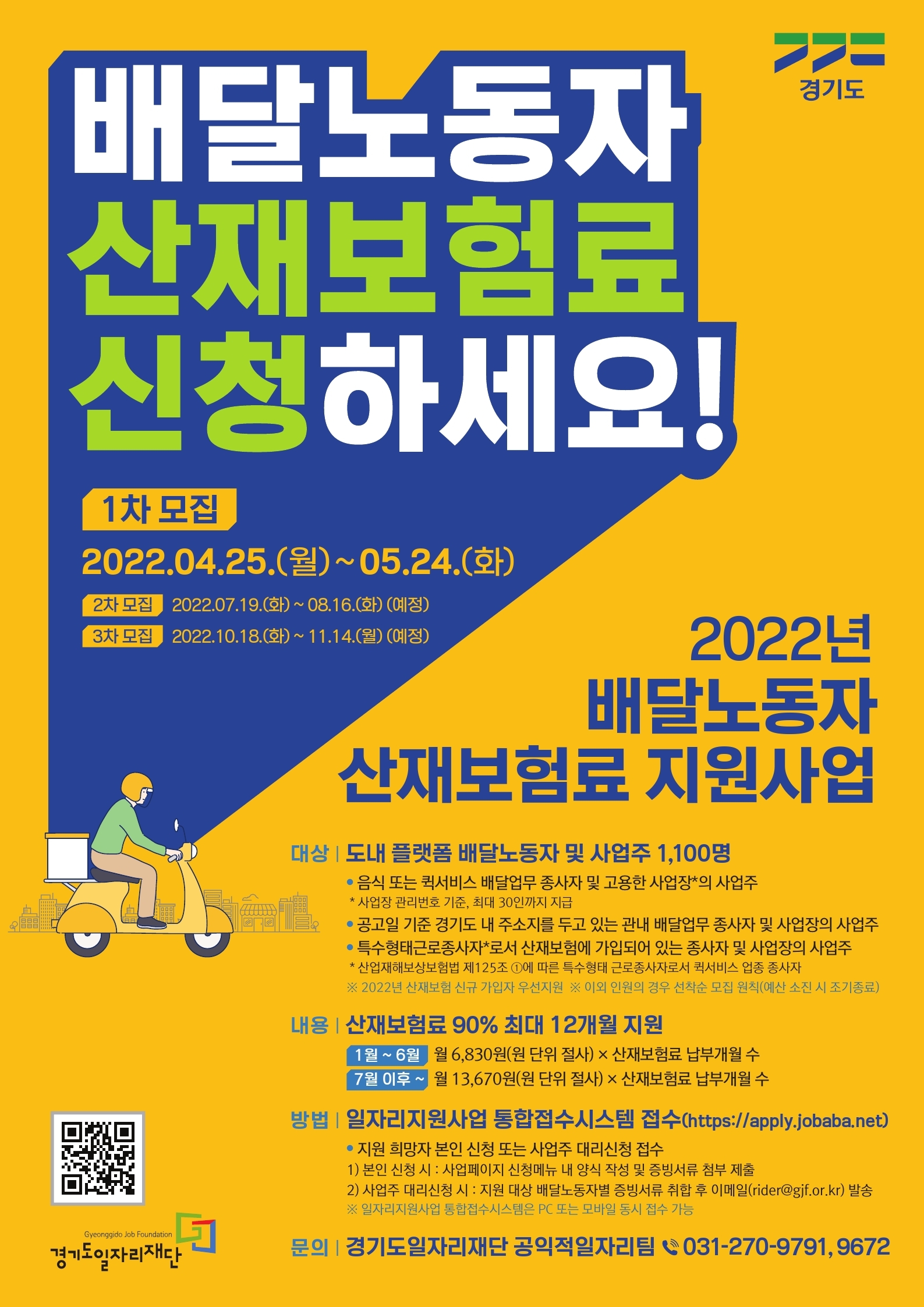 「2022년 배달노동자 산재보험료 지원사업」 대상자 1차 모집 공고