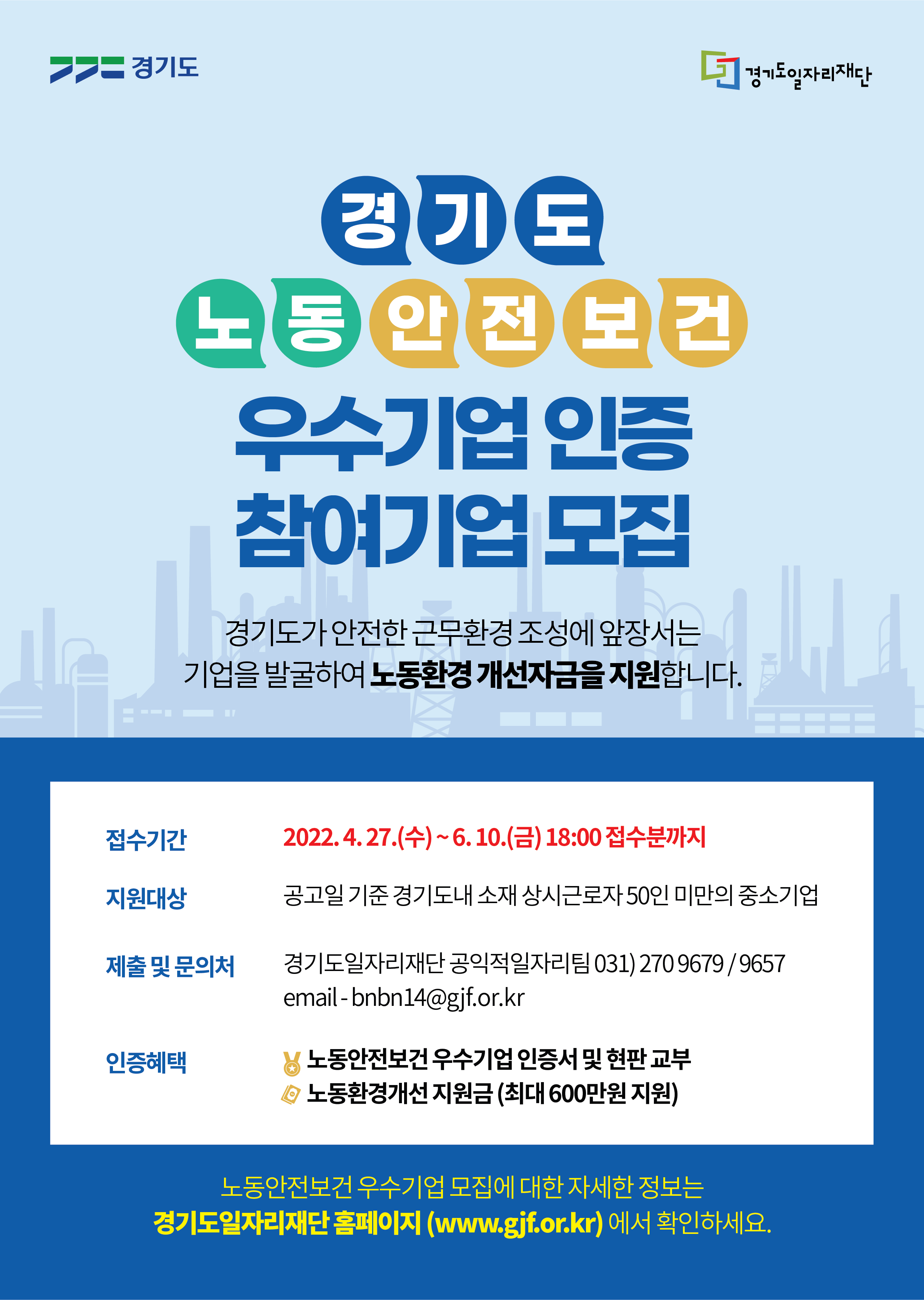 2022년 경기도 노동안전보건 우수기업 인증계획 접수기간 연장 공고