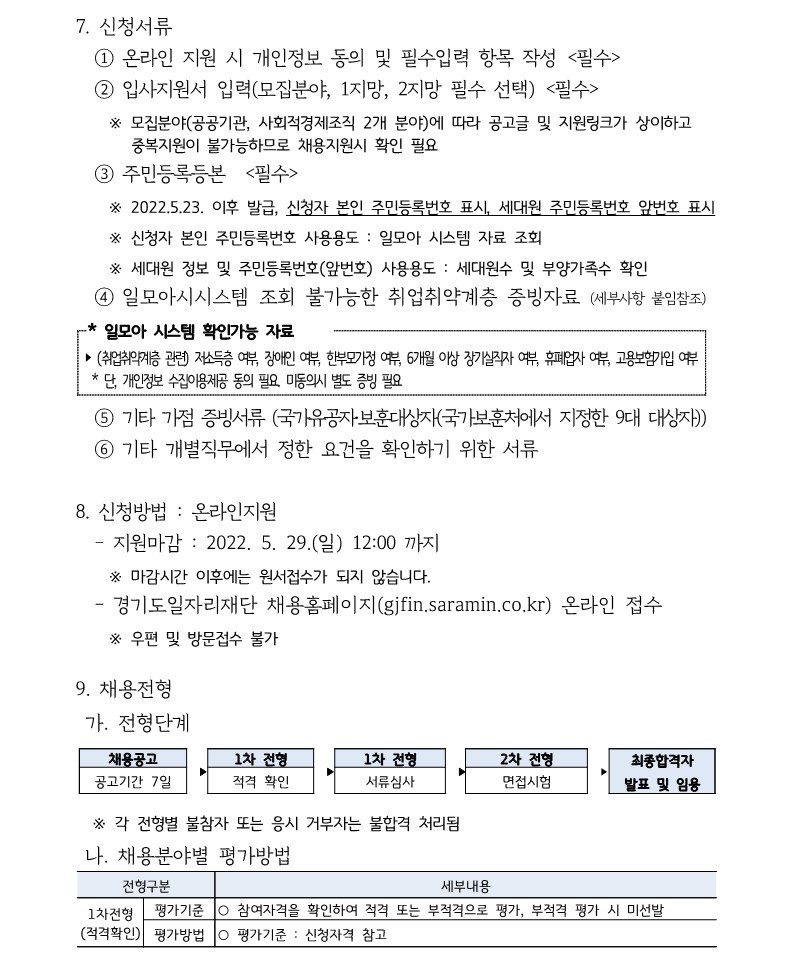 2. 모집직무(자격) 및 근무지주소 1부.