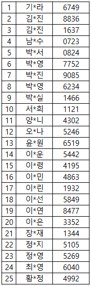 [교육 선발자 명단] ※ 가나다순(휴대폰 뒷자리)