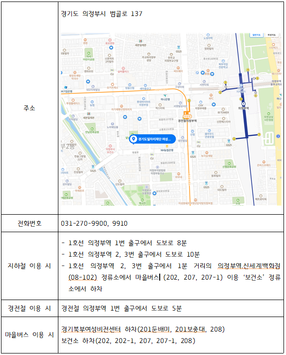 ■ 교육장소 : 경기도일자리재단 여성능력개발본부(북부) - 경기도 의정부시 범골로 137 1층 어울림홀