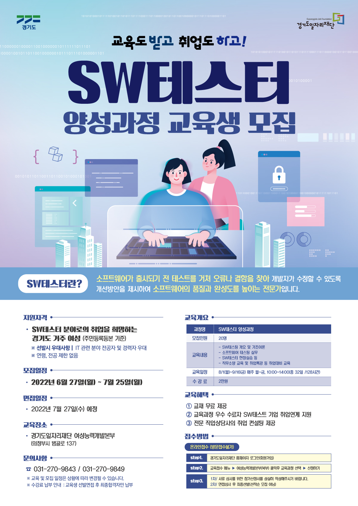 [모집기간 연장] 2022년 여성능력개발본부(의정부) SW테스터 양성과정 교육생모집(~7.25)