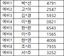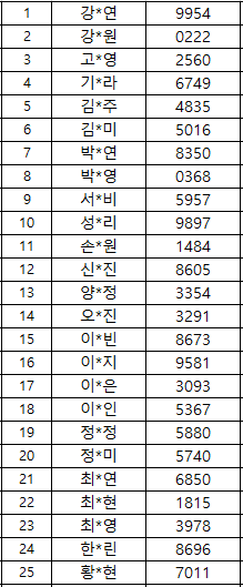 [교육 선발자 명단] ※ 가나다순(휴대폰 뒷자리)